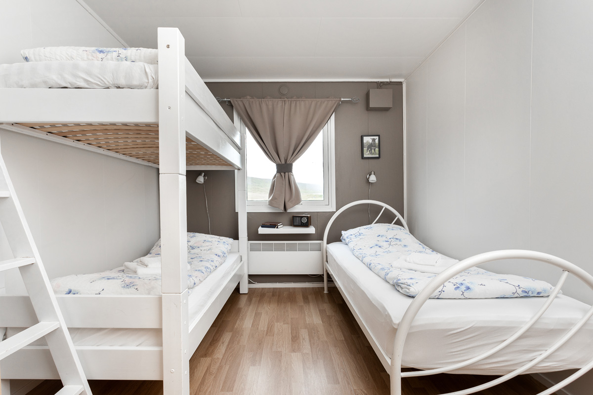Hér bjóðum við upp á rólegt og þægilegt umhverfi fyrir gesti og gangandi. Við bjóðum upp á uppábúin herbergi, en eins bjóðum við upp á tvö vel búin smáhýsi.