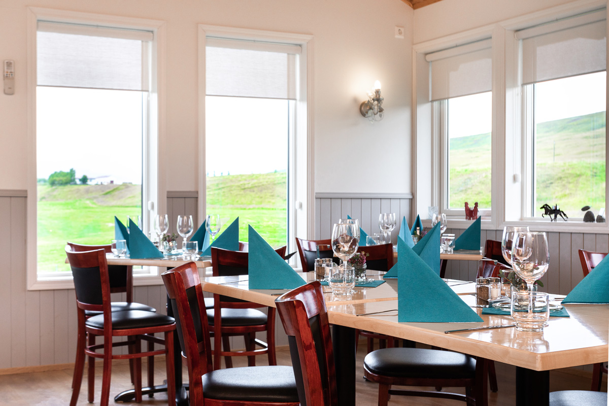 Matseðillinn okkar byggir á hráefni úr nærumhverfinu og allar máltíðir eru framreiddar úr eldhúsinu okkar.